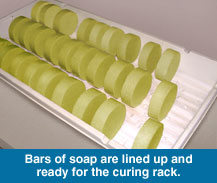 Labeling, aroma, and to a certain extent, packaging, can be special ordered so you can create a private brand of your own. Different styles and shapes of soap can also be accommodated, but at a lower production rate. The existing system is optimized for the current size and shape of the soap.